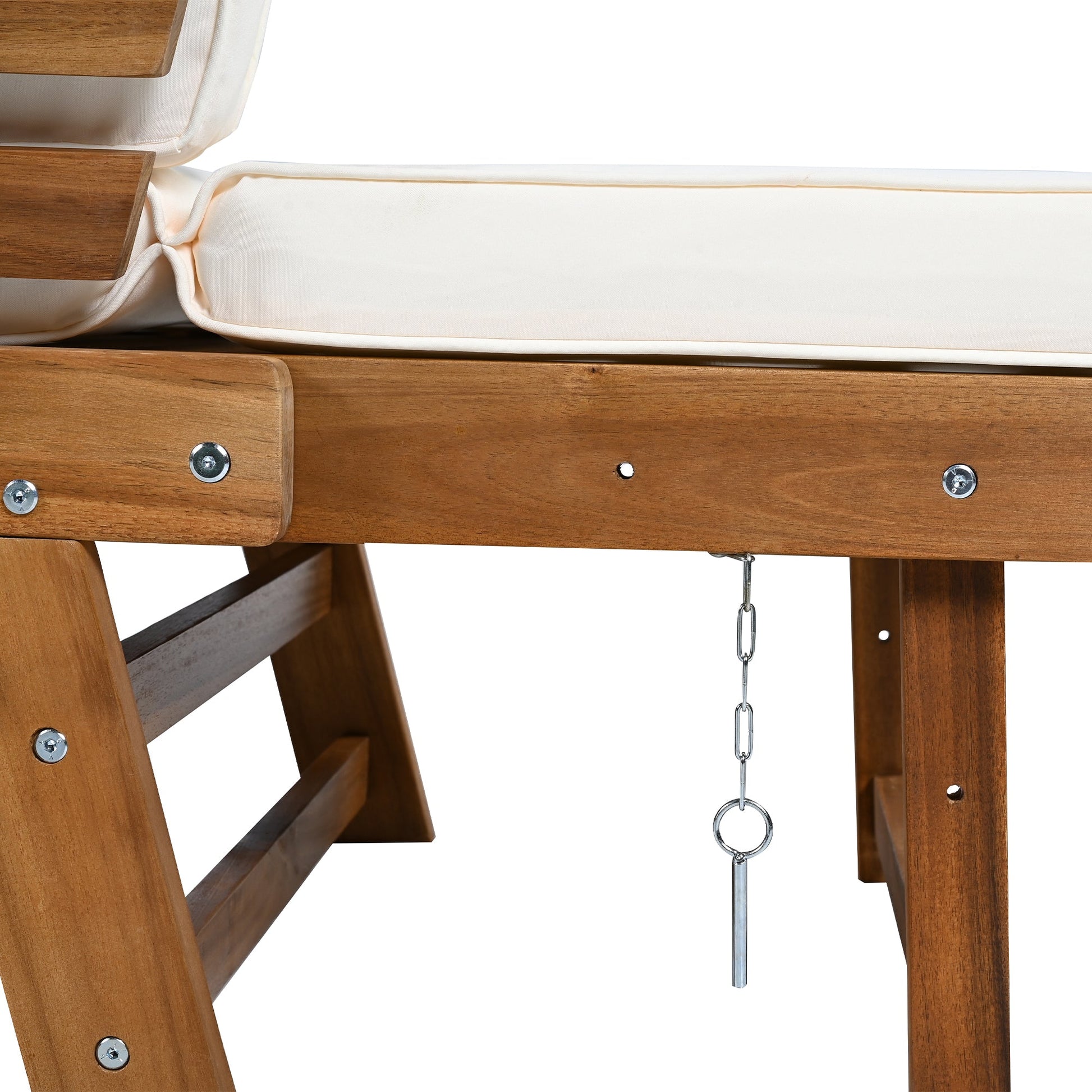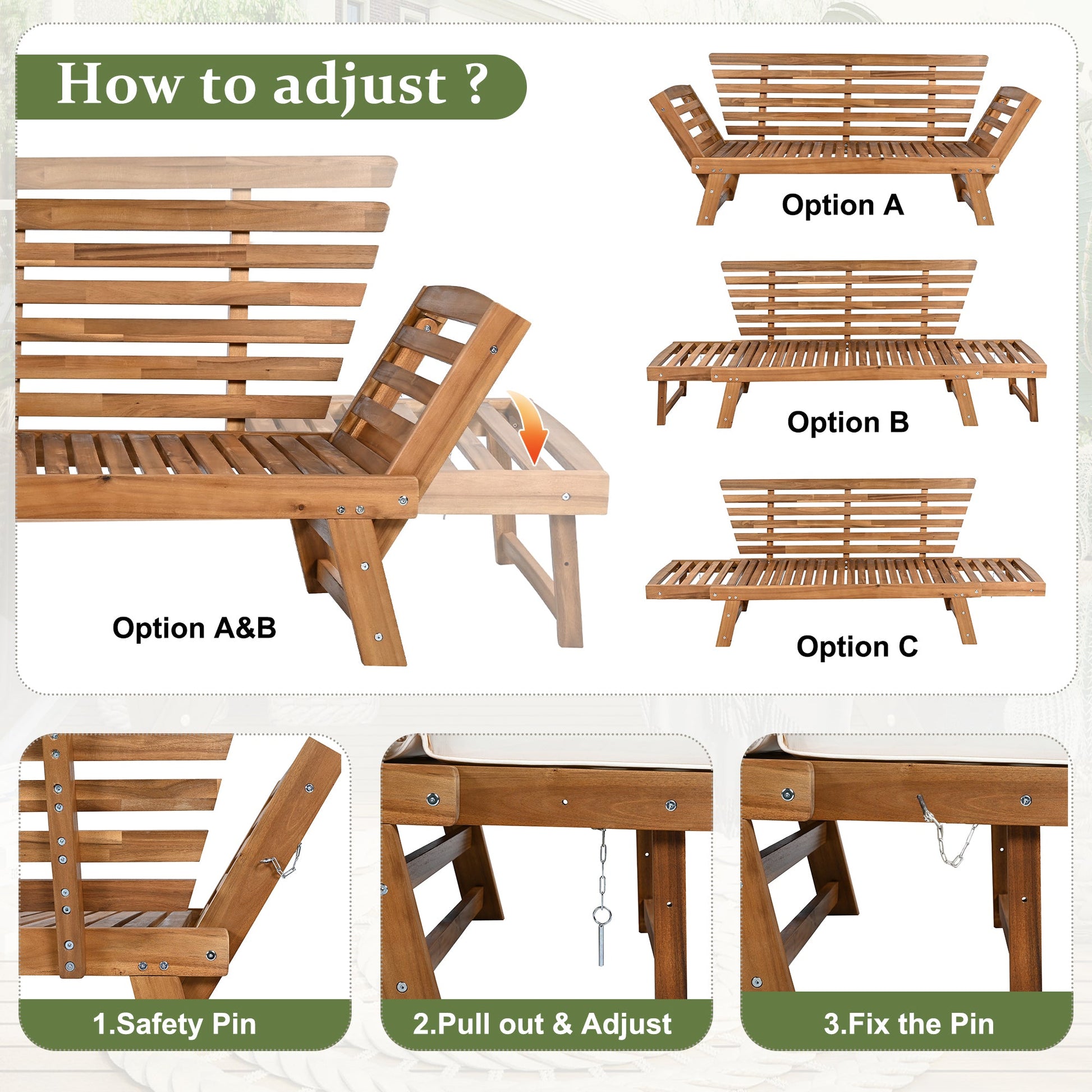 Outdoor Adjustable Patio Wooden Daybed Sofa Chaise Lounge with