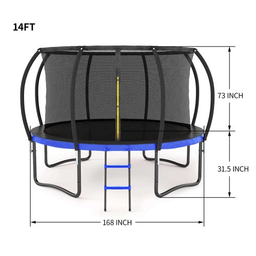 14 feet outdoor large trampoline with internal safety fence net, ladder, PVC spring cover liner for kids, black and blue