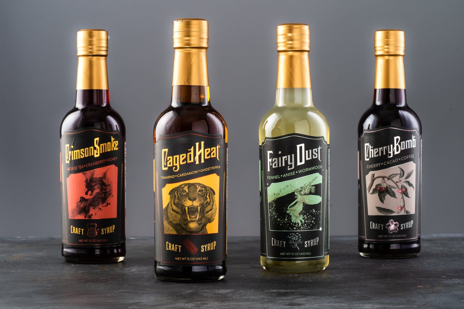 Three of each of our four syrups!